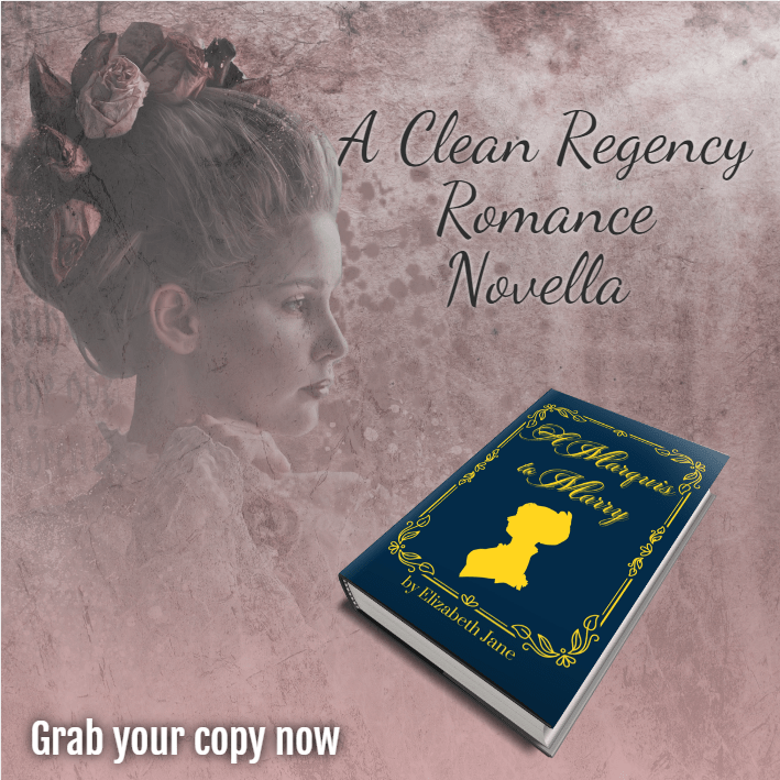 A Marquis to Marry is the endearing first sweet and wholesome Regency Romance Novella in the Royal Blood Romance series. If you like love at first sight, romance blossoming in adversity, and a happily ever after, then you’ll love Elizabeth Jane’s enchanting story.