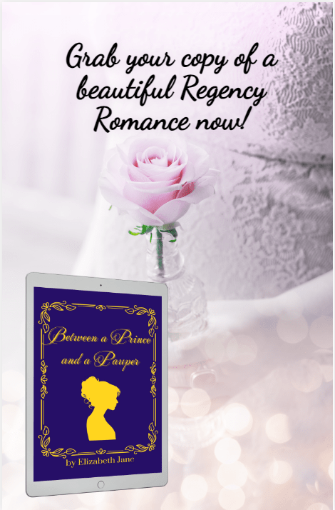 Between a Prince and a Pauper is the third heart-warming, sweet and wholesome Regency Romance in the Heirs and Graces series. If you like fighting for love, secret love affairs, and a happily ever after, then you’ll love Elizabeth Jane’s enchanting story.